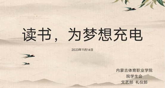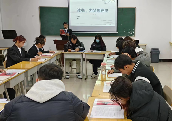 11月14日晚7点,院学生会在临时校区举行了“读书,为梦想充电”为主题的读书交流会。学院团委书记冬梅,院学生会成员参加了活动。