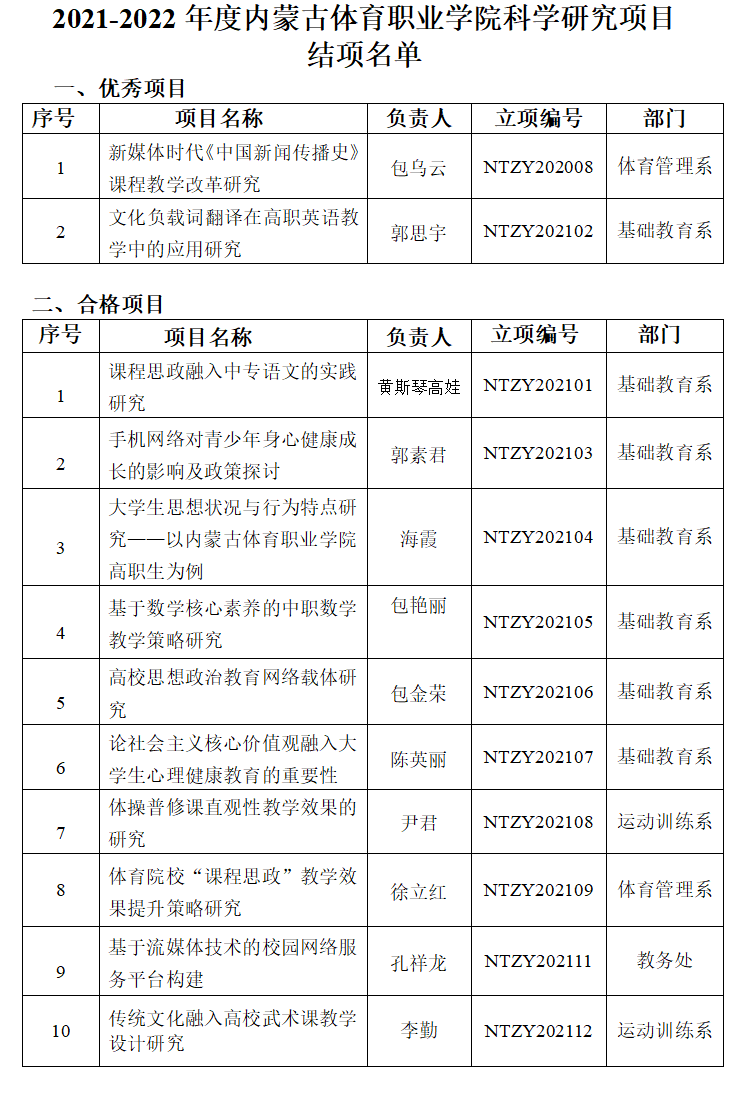 2021-2022年度beat365官方网站科学研究项目结项评审工作现已结束,本年度收到结项申请12项。经学院评审委员会公平、公证、公开的评审,12项课题通过评审。予准结项。其中优秀2项,合格10项。