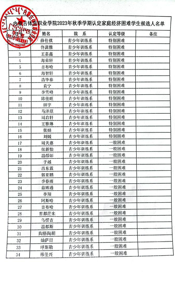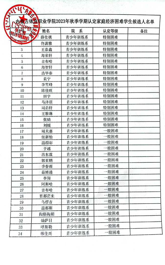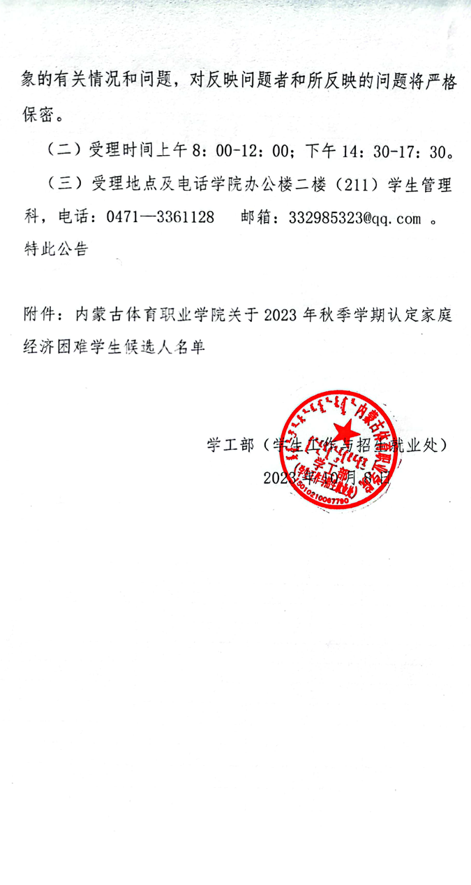 beat365官方网站关于2023年认定家庭经济困难学生候选人的公示