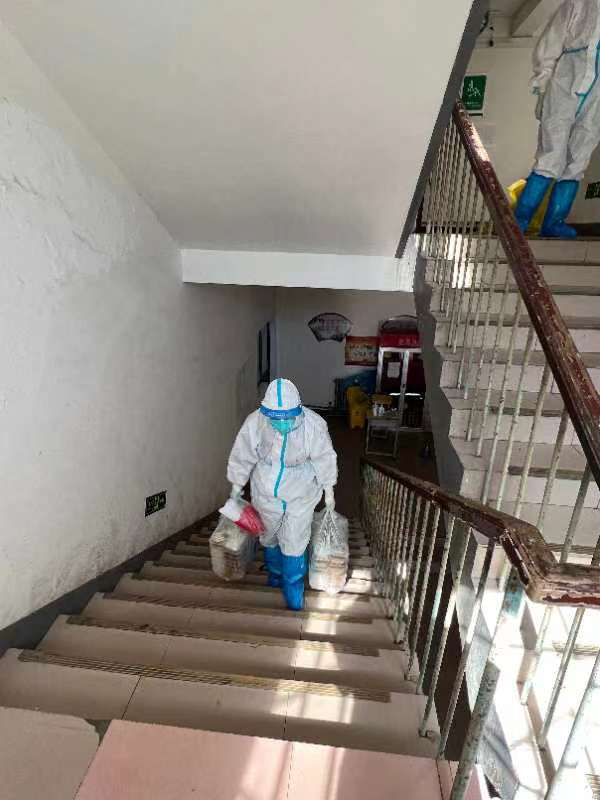 她每天从早上6:30起床,开始为190多名、分住3层楼的学生发放抗原监测试剂盒、发早餐、打热水、收垃圾、倒垃圾、消毒、通风、给学生送日用品、每日汇总学生相关数据和具体情况等等。这一天三趟超负荷的工作量,累的她脚后跟钻心的疼...