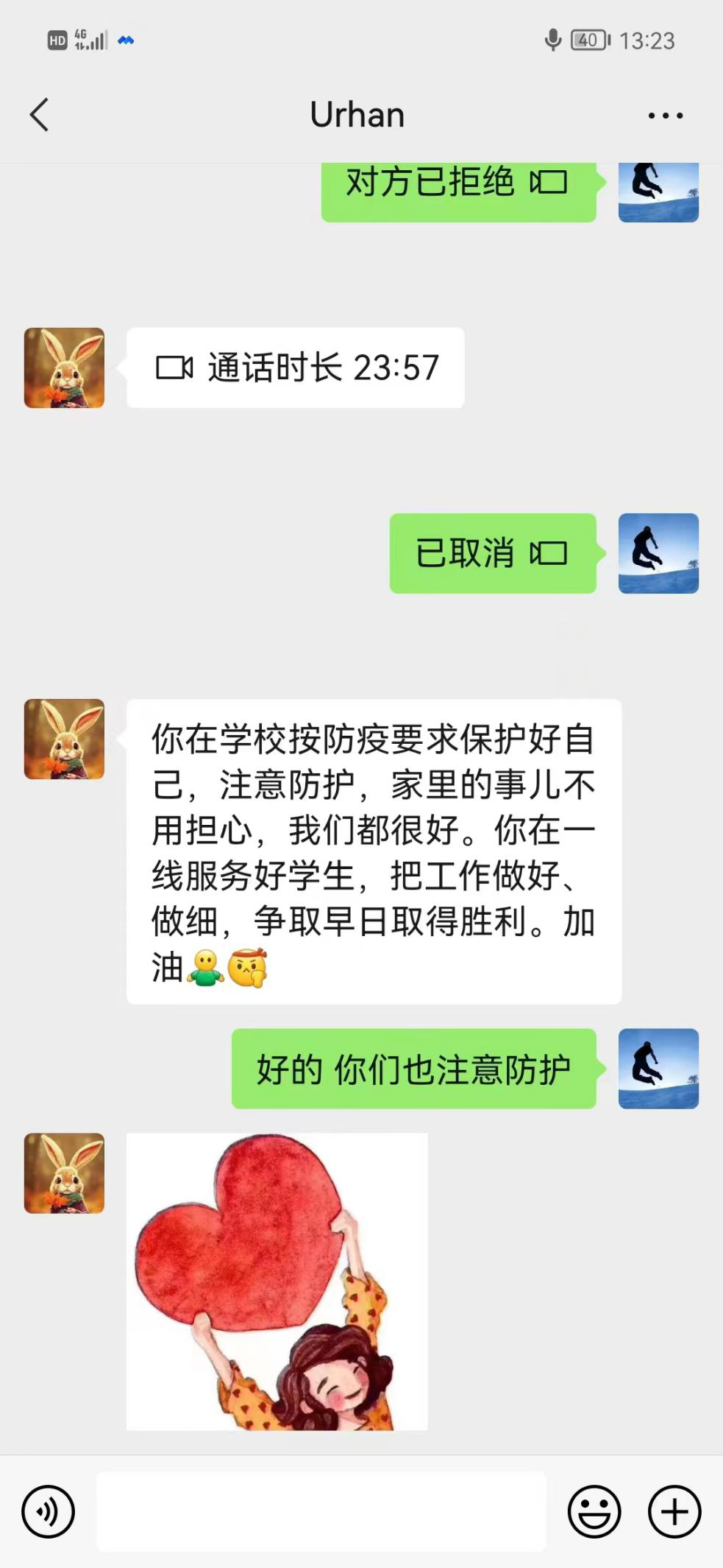 校园疫情发生以来,他每天24小时随时待命,经常工作到凌晨。从运动训练系的日常工作到教学、学生管理;从负责学生各类信息收集统计到转运阳性、密接、次密接学生;从学生心理健康辅导到督促宿舍通风消毒;从发放抗原试剂盒到统计核酸检测结果;从发放防疫物资到体温异常学生跟踪监测;从发放消毒消杀物品到收垃圾等等,到处都是他的身影,他顾不上吃饭,顾不上休息,他满心想的都是如何守好自己的“一亩三分地”,如何能让学生过的舒适一些,确保学生安全。从10月1日至今魏照日格图一直坚守在学院抗疫一线,时刻守护在学生身边。