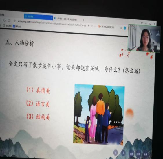 李芳老师在《散步》的课文讲解中,恰当地融合当下疫情形成了抗“疫”教学内容,引导学生感恩抗“疫”一线辛苦付出的老师,鼓励学生同舟共济,积极配合疫情防控,早日迎接抗“疫”的胜利。
