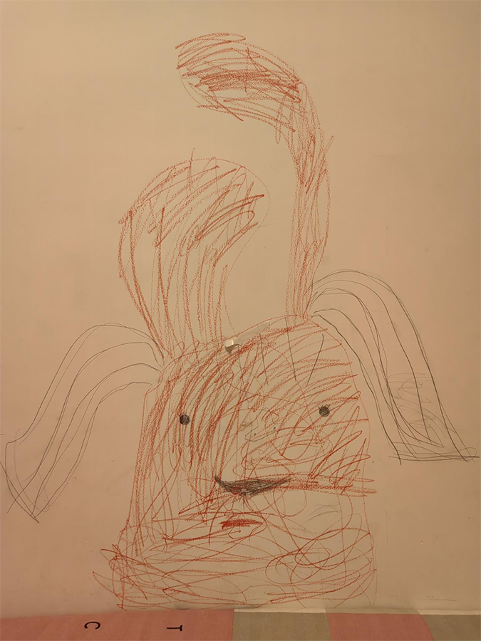 张茹的女儿今年才六岁,这些天老公带病在家照顾孩子,而且不会做饭,父女俩在家经常是对付一口就算一顿饭。女儿十分想念妈妈,她从来没有离开过妈妈,可是这次分别却一个多月了,每次视频女儿都哭哭啼啼,经常问:“妈妈你累不累?妈妈你什么时候能回家?我等你早点回家......”每次张茹都耐心地开导女儿,告诉女儿说:妈妈要和许多叔叔阿姨一起并肩作战,战胜病毒后才能回家,并且还会给女儿讲个小故事。女儿每天最期待的就是妈妈给她讲抗疫小故事的时刻。女儿每天睡觉都要抱着妈妈的睡衣才能入睡,她太想妈妈了,凭借想象力还画了一张画,寄托她想念妈妈的情思。