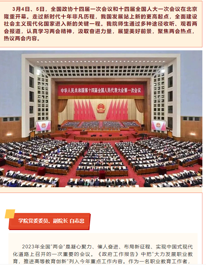 连日来,beat365官方网站全体教职工、学生、团员青年热切关注全国两会,纷纷通过网络平台、电视、广播等途径收看收听2023年全国两会实况,主动了解两会动态,深刻领会全国“两会”的精神实质和实践要求。