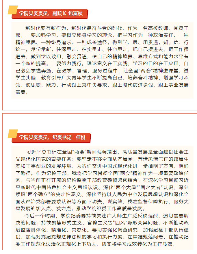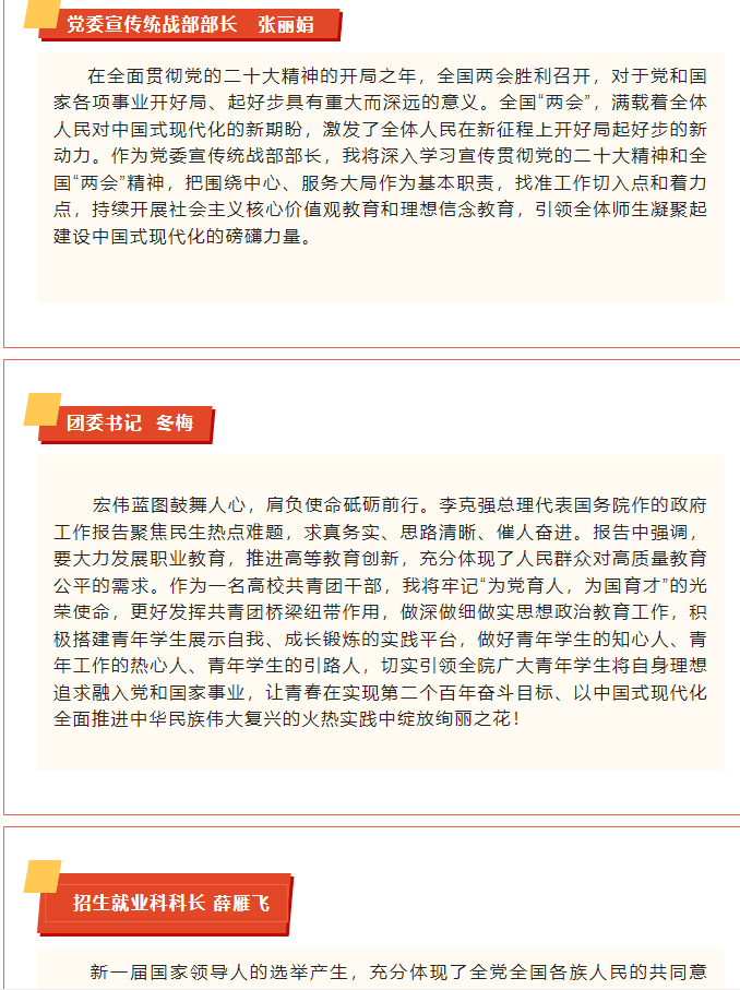 组织学院教职工和团学干部、青年学生对 “两会”精神进行热议,收到稿件总计40余篇,经梳理、编辑将陆续转载学院网站和公众号。