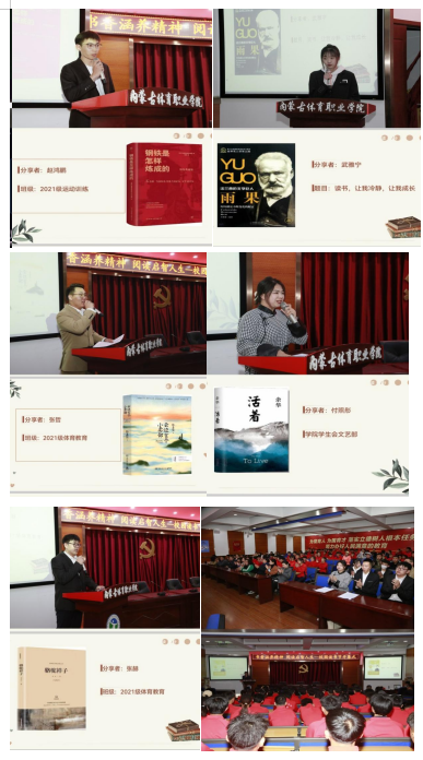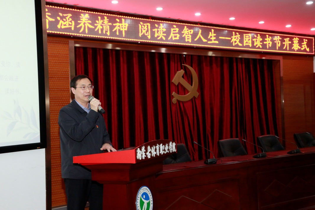 习近平总书记曾说“读书可以让人保持思想活力,让人得到智慧启发,让人滋养浩然之气”。为进一步深入扎实开展学习贯彻习近平新时代中国特色社会主义思想主题教育,落实国家关于全民阅读活动的重要部署。4月25日晚,学院第六届“书香涵养精神 阅读启智人生”主题校园读书分享会活动在办公楼一楼多媒体教室举办。学院党委委员、副院长白志忠出席并讲话。宣传统战部、教务处、学生处、团委、运动训练系、体育管理系负责人以及工作人员和教务处全体人员、各系教师代表、部分学生代表140余人参加了活动。此次活动由图书信息设备科和团委联合举办,活动由图书信息设备科科长乌兰主持。